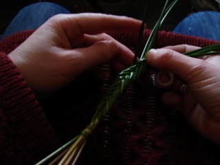 Anyhow, what has all this got to do with creativity? Other than the obvious fact that I spend a blissful hour or two gathering and plating rushes in a very creative style! I find that time spent doing a gentle yearly ritual, like this re-creation of the Little Bride, is exceedingly nurturing. It anchors me to the year in a very natural way and I find such obscure festivals easier to relate to than more commercialised ones like Christmas or Valentine’s day. This year I missed the story telling and candle-lit festivities in the Universal Hall at Findhorn , I even missed the day itself as I was so busy with changing the studio round that I FORGOT that it was St Bride’s Day! For me this is almost like forgetting that it’s Christmas! When I remembered, a few days later, I also remembered that all the old Celtic festivals were originally anchored not to a specific date but rather to the tides of the natural world. The Snowdrops were only just coming out in my garden, so hay! it’s the right time to celebrate!