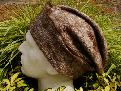 | Cap felted with Gotland fleece (from the above flock) and some silk tops |