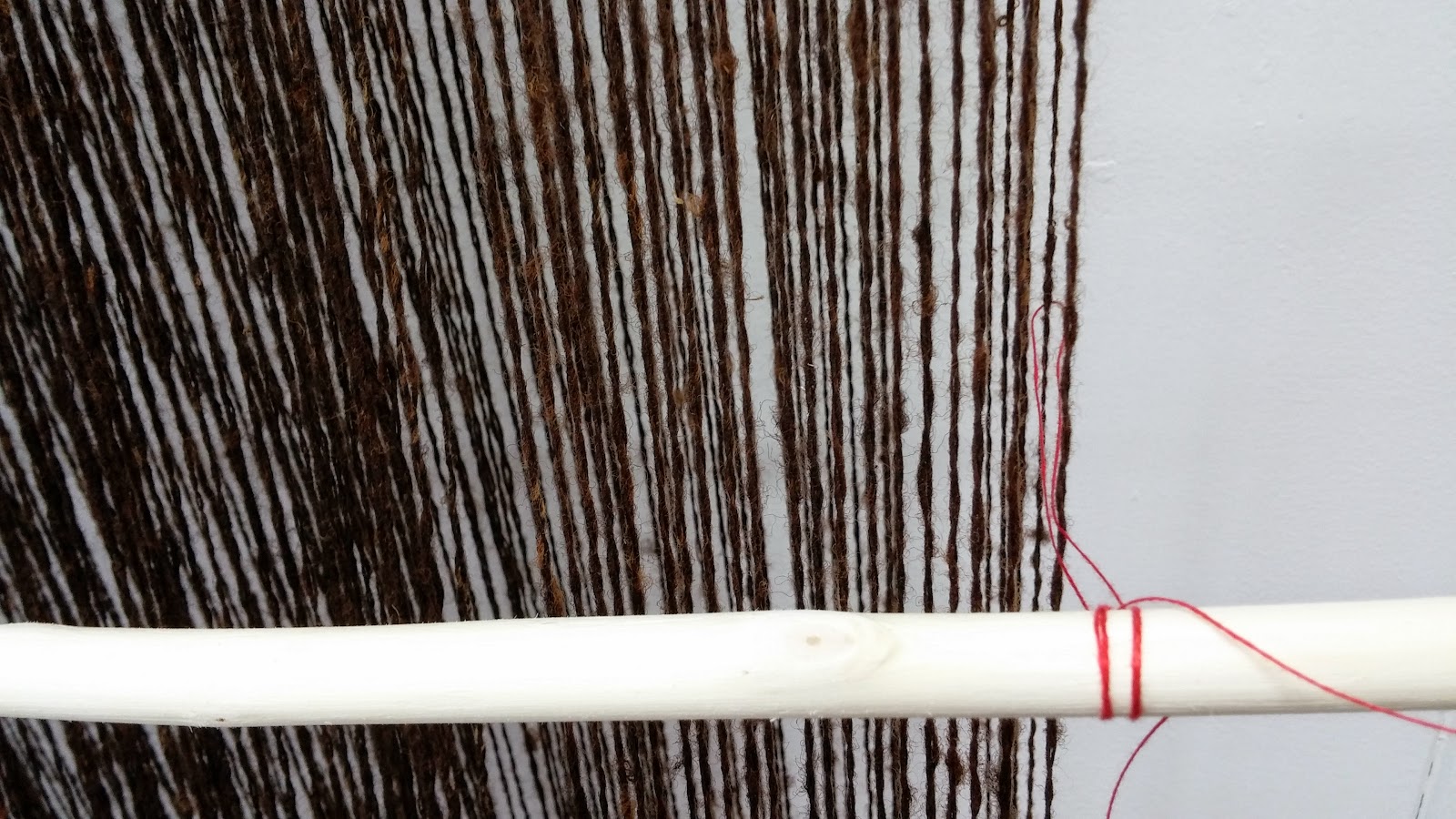 The next step is putting the ‘shed’ in to allow the weaving to progress a little faster than it might otherwise. I have chosen this red thread to weave the shed from for two reasons.