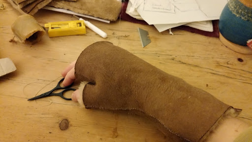 It’s taken a few days, but finally my new fingerless gloves are made. Many tweaks of the ‘pattern’ (I drew round my hand…) and adding in of gussets and, though they look as elegant as plaster casts, they are WARM.