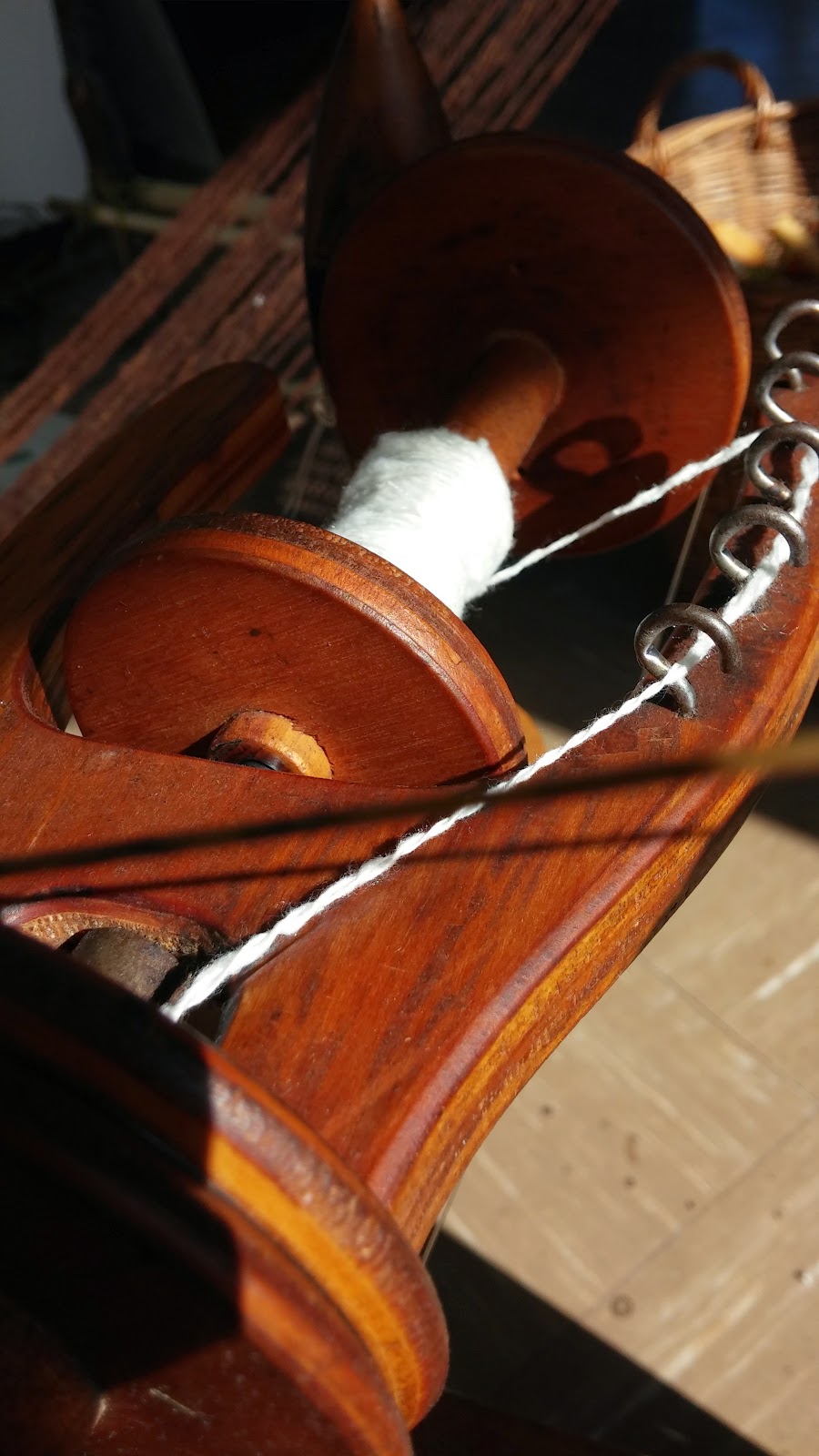 Finally all my silk is spun, plied and wound into skeins ready for washing, drying and winding into balls… My hands will be glad of the change as silk, so divinely soft and lush to the gently touching hand, is really strong and needs a lot of strength and tough skin to spin. It’s easy to cut yourself on the tightly twisting fibres as you try to draw them out to spin a fine thread.