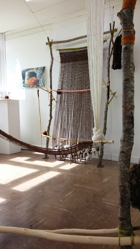 My studio is looking a bit empty in these photos. I’ve got so used to all the clutter of excess branches, baskets of wool, work table, wood shavings and scraps of fleece. Today I had to get everything possible off the floor so it could be washed. I want my white silk warp to drape and drizzle on the floor and I want it to STAY white!