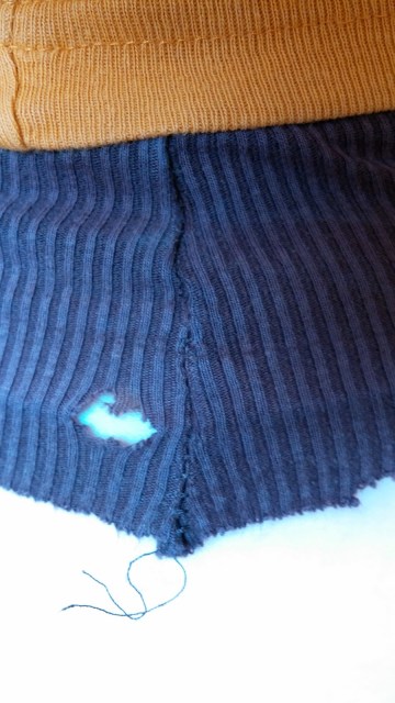 There is something unutterably tender and touching about the patterns of wear emerging on my long-suffering clothes. It puts me in mind of Shakespeare’s words (in Hamlet I think it was) about ‘sleep, that knits up the ravelled sleeve of care.’ As sleep can a repair a frazzled mind, so darning can repair a ragged hem.