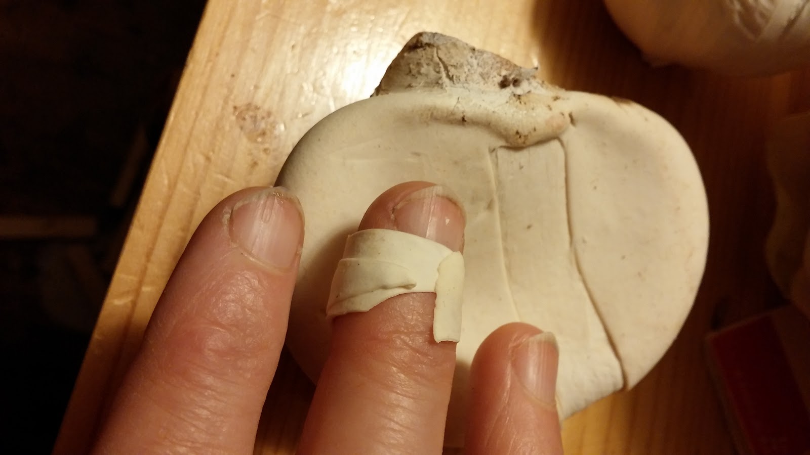 As usual while out gathering, my eye is open for anything I can work with or eat. This time I picked up a young Birch Polypore off a fallen branch, thinking that I would have a go at making tinder or a knife strop. However, as I dinged my finger off of something it came in handy as a first aid plaster instead!