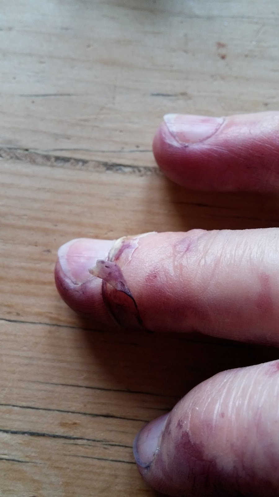 Interesting to see how the polypore stood up to being worn in bed over night, wetted with blaeberry juice, scraped by heather twigs and generally coping with rough usage while I was out wild gathering. It’s looking a little ragged and has lost some of its width, but its still covering and protecting the wee cut on my finger.